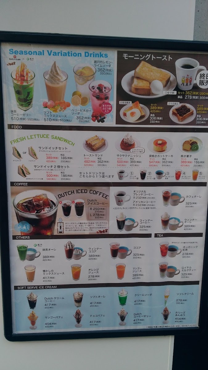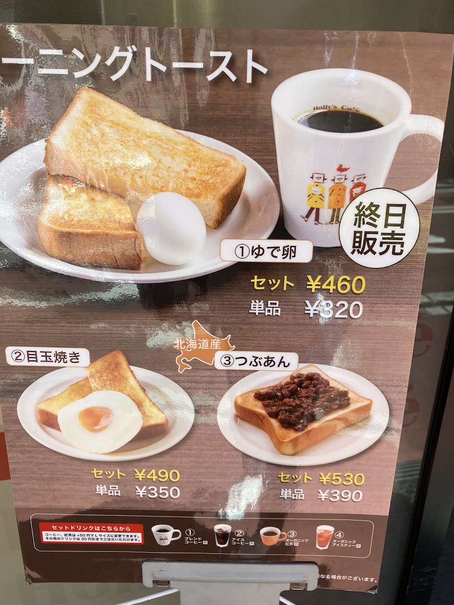 Holly's Café at Nishinomiya Station offers a delightful menu that combines classic café staples with unique, comforting options. The breakfast menu features the トーストモーニングゆで卵, a simple yet satisfying choice with toasted bread and a soft-boiled egg, perfect for starting the day. For coffee lovers, the ダッチアイスコーヒー l is a must-try, offering a refreshing and rich iced coffee experience. Sweet tooths will love the 抹茶パンケーキ, a beautifully fluffy matcha pancake dish that balances sweetness with a hint of earthy bitterness. For something savory, the アーモンドバタートースト delivers a crunchy, nutty toast topped with almond butter, while the サンドイッチ二個セット offers a filling set of two sandwiches that are perfect for a quick, satisfying meal. The café also offers a selection of warm beverages like their ブレンドコーヒー, a smooth and aromatic coffee blend that pairs well with any dish. If you're looking for something more indulgent, the めんたいこクリームパスタ 冷凍をチン is a creamy pasta dish with a bold, spicy mentaiko flavor. For dessert, the クッキーシューソフト is a light and delicious combination of cookie and soft-serve ice cream that will satisfy any sweet craving. Pair these meals with a cold アイスカフェオーレ or a rich ダッチコーヒーと for the ultimate café experience. Whether you're in the mood for a hearty meal or a light snack, Holly's Café offers a menu that caters to a variety of tastes and preferences.